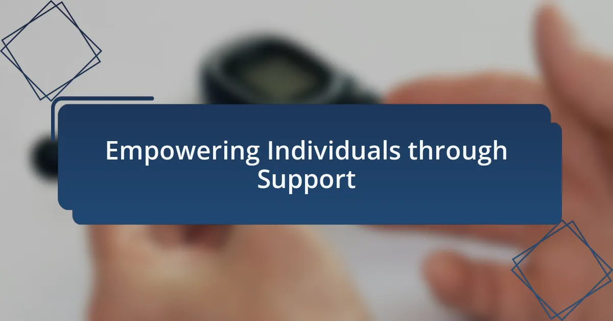 Empowering individuals through support means actively listening to their stories and experiences. I recall a mentoring session where I sat down with a young person who had cerebral palsy. As we talked about their aspirations and challenges, I realized that offering encouragement was just as vital as providing practical assistance. How often do we underestimate the power of simply being heard and understood?