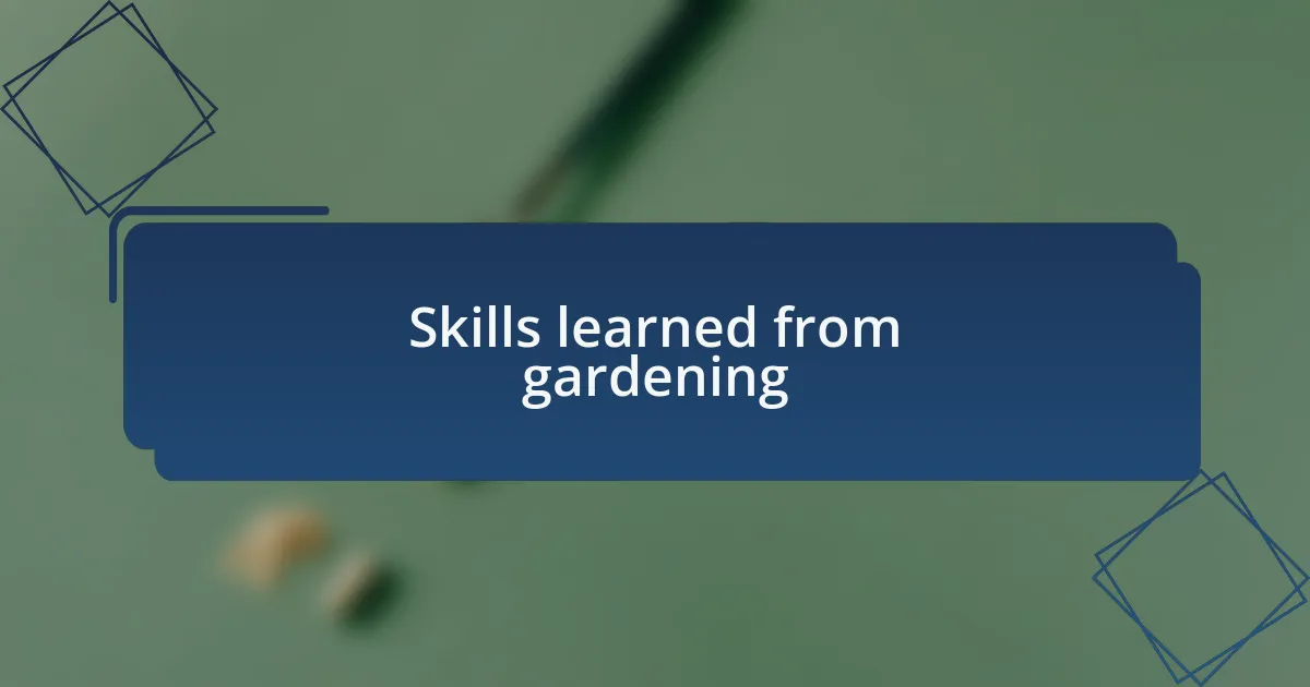 Gardening nurtures practical skills that extend far beyond the soil. For instance, understanding how to care for plants has taught me incredible patience. It’s like watching nature’s timeline unfold—after all, have you ever waited weeks for seeds to sprout, only to feel that rush of joy when you finally see a green shoot? That thrill is something I now carry into my everyday life.